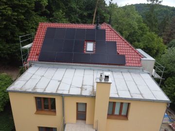 Výkon FVE: 29,9 kwp, full black panely, 475 W, bateriové úložiště 17,3 kwh, Střídač Solax Power